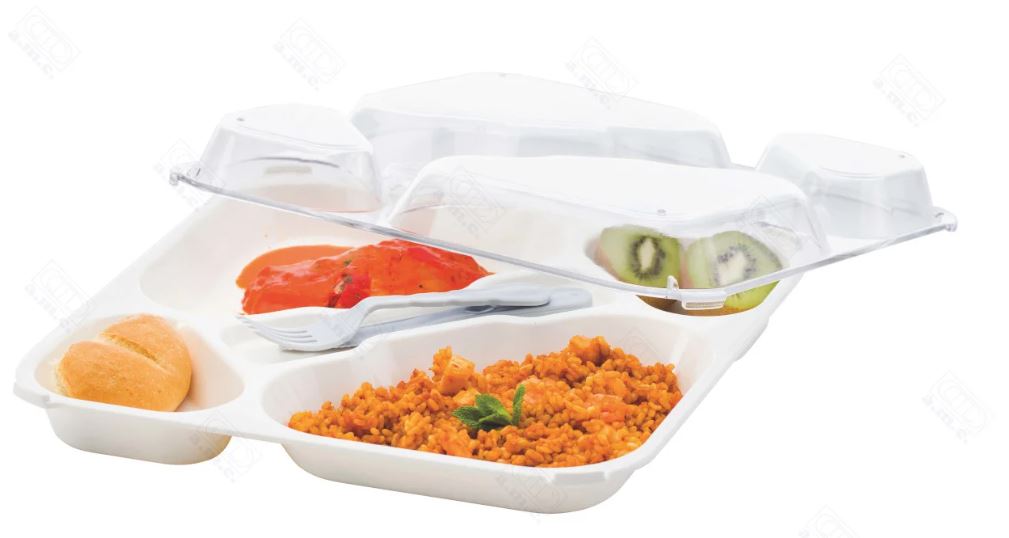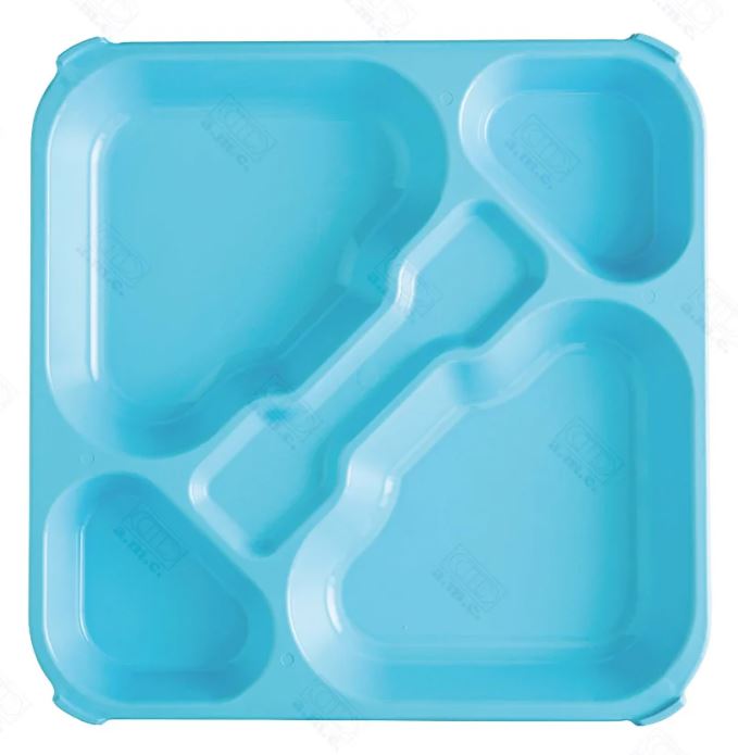 Bandeja de 5 Compartimentos de policarbonato sin BPA, ideal para el transporte de comida en Colegios, comedores, residencias, catering, etc...