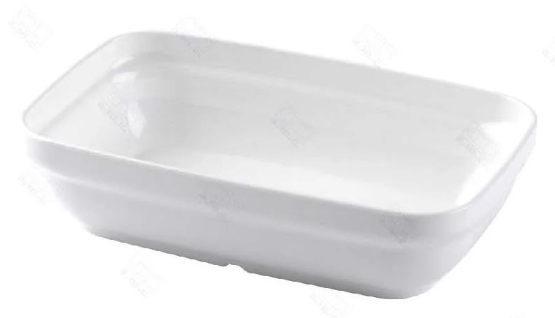 Fuente rectangular fabricada en Policarbonato de 17 cm., ideal para la comida en Colegios, comedores, residencias, catering, etc...
