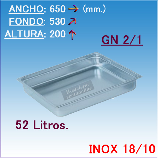 - Cubeta Gastronorm GN 2/1, construida totalmente en acero inoxidable. - Posibilidad de acoplar asas móviles o fijas.