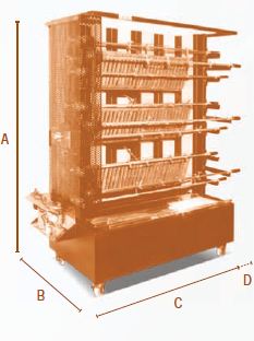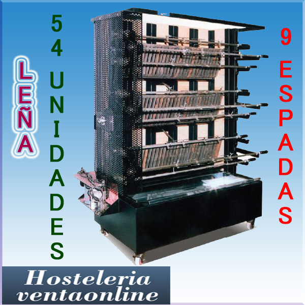 - MEDIDAS (mm.): 1540 X 900 X 1730 (Ancho x Fondo x Alto) - CAPACIDAD: 54 Unidades. - ESPADAS: 9. - ASADOR DE POLLOS DOBLE ESPADA DE LEÑA.