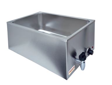 Baño María de sobremesa ideal para calentar o presentar alimentos. Construido totalmente en acero inoxidable y grifo de vaciado.