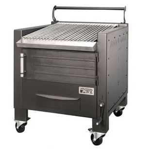 Ideal para exterior con parrilla extraíble acanalada e interior de hierro fundido. Medidas 800x820x930 mm. Cocción mediante carbón vegetal y apto para cubrir las necesidades de hasta 100 comensales.