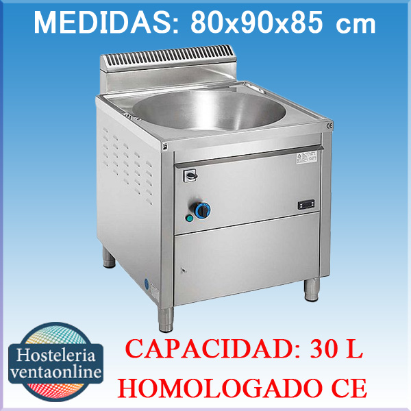 - MEDIDAS (mm.): 800 X 900 X 850 (Ancho x Fondo x Alto) - FUNCIONAMIENTO: Butano/Propano o Gas Natural. - POTENCIA: 25,3 Kw. - CONSUMO: GLP: 1,96 Kg/h GN: 2,53 m3/h. - VOLTAJE(v)/MOTOR(w): 220/50. - CAPACIDAD DE TRABAJO (L.): 25 Litros.