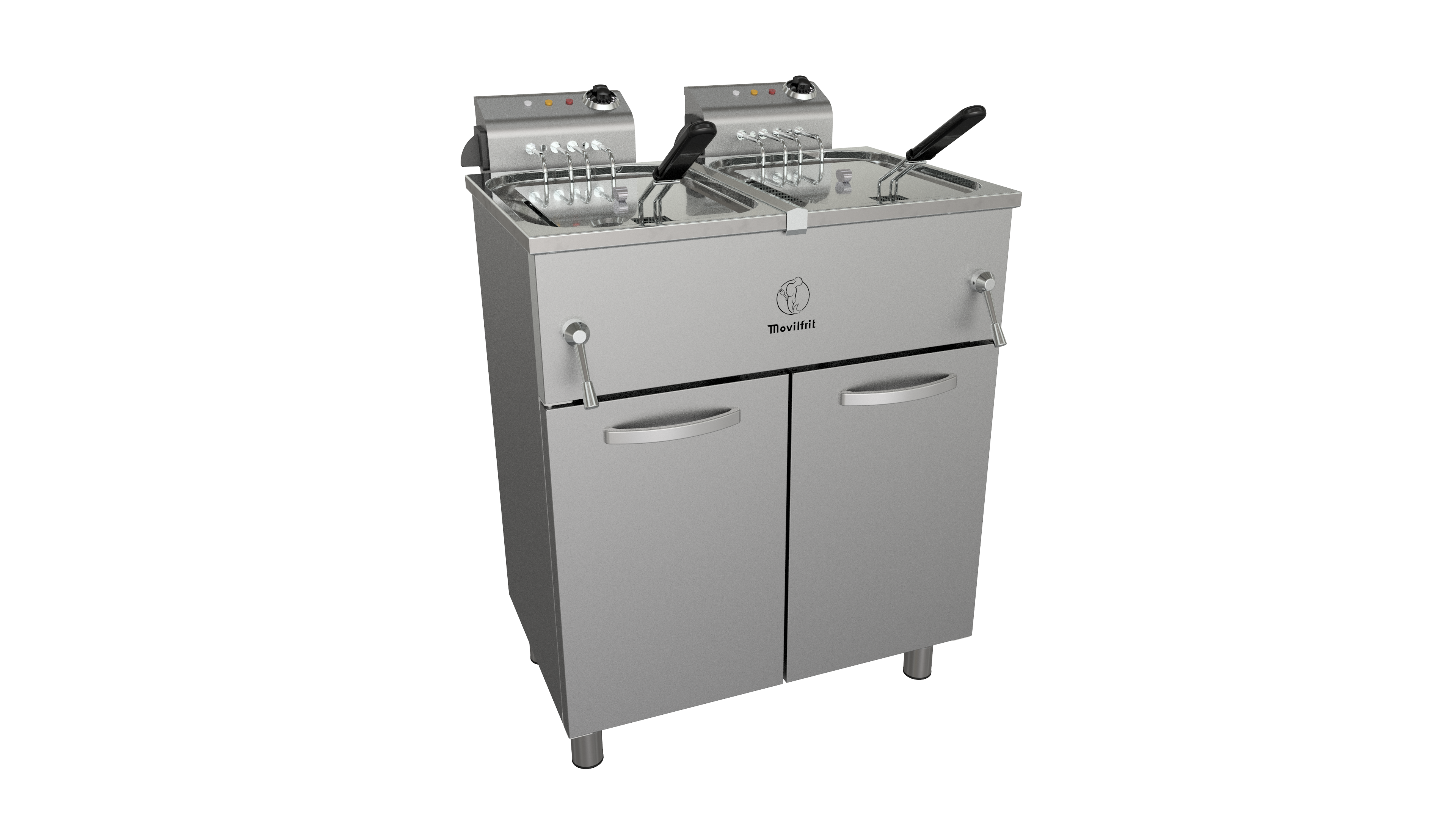 Freidora Eléctrica FAH 17+17 230 Movilfrit. Fabricada en acero inoxidable con cabezal extraible y elevación del cabezal.