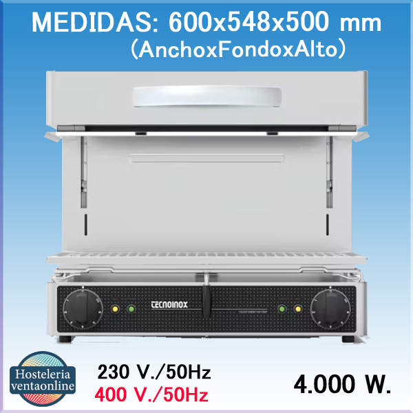 Salamandra Classic Eléctrica, utilizado en las cocinas industriales con medidas:600x548x500 mm. y Potencia de 4.000 w. Ofrece el máximo rendimiento gracias a la cocción por infrarrojos. Tapa Móvil.