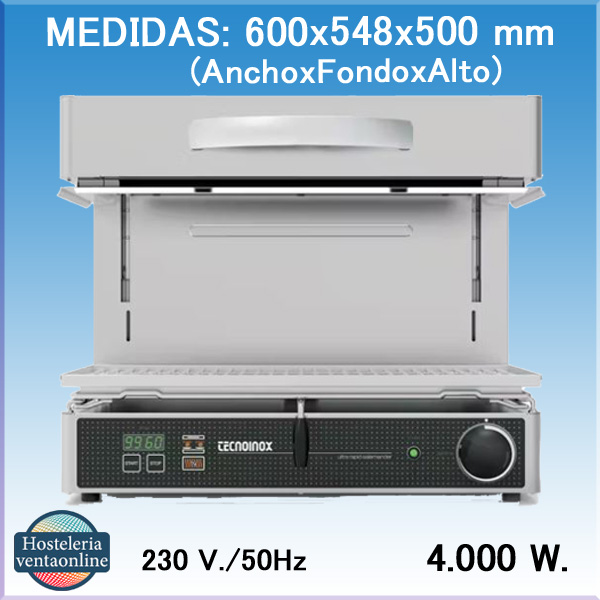 Salamandra Ultrarrápida Eléctrica, utilizado en las cocinas industriales con medidas:600x548x500 mm. y Potencia de 4.000 w. Ofrece el máximo rendimiento gracias a la cocción por infrarrojos. Tapa Móvil.