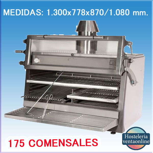 El Horno brasa pira 120 lux Inox ED de PIRA, es aconsejable para 175 comensales, tiene 7 guías en el interior y la calidad-Precio es inmejorable. El Horno PIRA 120 LUX INOX ED, HORNO Brasa de PIRA, esta construido interiormente en hierro fundido y el exterior en Acero inoxidable, recogedor de aceites integrado y cajón recogecenizas. Termómetro y regulador de tiro incorporado. Sistema de Refrigeración Piracold.