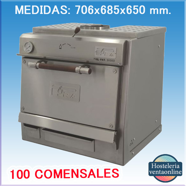 El Horno brasa pira 70 XL SILVER SD de PIRA, es aconsejable para 100 comensales, tiene 7 guías en el interior y la calidad-Precio es inmejorable. El Horno PIRA 70 XL SILVER SD, HORNO Brasa de PIRA, esta construido interiormente en hierro fundido con la terminacion integra en Acero inoxidable, recogedor de grasas y cajón recogecenizas. Termómetro y regulador de tiro incorporado. Sistema de Refrigeración Piracold.