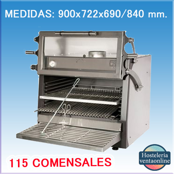 El Horno brasa pira 80 lux Inox ED de PIRA, es aconsejable para 115 comensales, tiene 7 guías en el interior y la calidad-Precio es inmejorable. El Horno PIRA 80 LUX INOX ED, HORNO Brasa de PIRA, esta construido interiormente en hierro fundido y el exterior en Acero inoxidable, recogedor de aceites integrado y cajón recogecenizas. Termómetro y regulador de tiro incorporado. Sistema de Refrigeración Piracold.