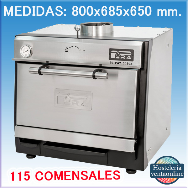 El Horno brasa pira 80 LUX SD de PIRA, es aconsejable para 115 comensales, tiene 7 guías en el interior y la calidad-Precio es inmejorable. El Horno PIRA 80 LUX SD, HORNO Brasa de PIRA, esta construido interiormente en hierro fundido con la terminacion en acero inoxidable y el marco de la puerta en negro, recogedor de grasas y cajón recogecenizas. Termómetro y regulador de tiro incorporado. Sistema de Refrigeración Piracold.