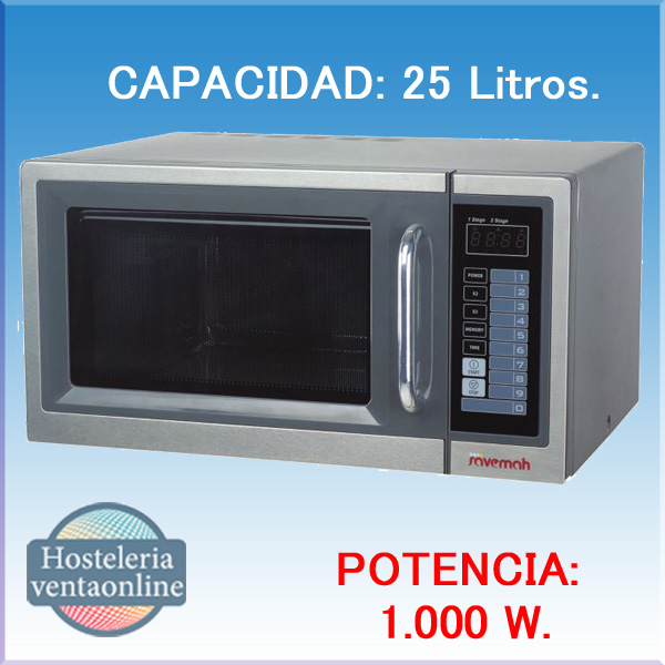 Microondas Profesional con capacidad de 25 Litros. Fabricado el exterior e interior en acero inoxidable.
