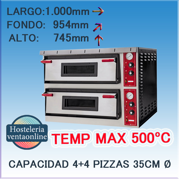 - Capacidad (pizzas de 35cm diámetro): 4+4