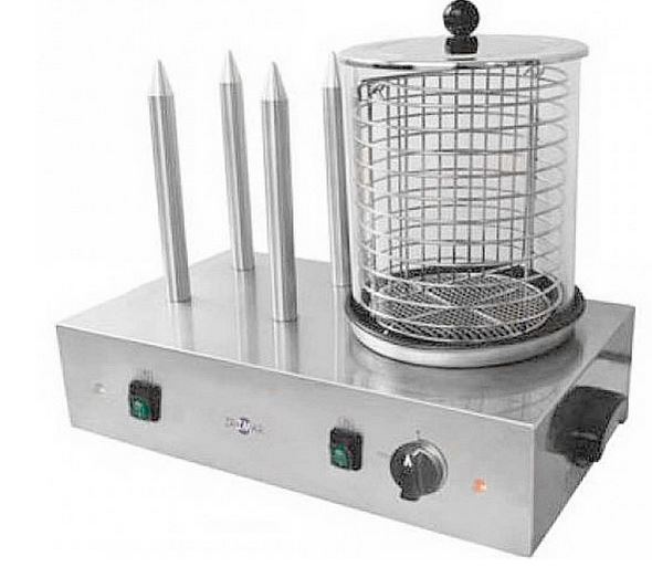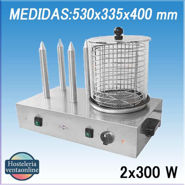 Máquina de perritos fabricada en acero inoxidable AISI 202. Cocción de vapor. Depósito de agua inferior y recipiente de cristal con divisoria.