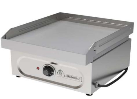 La Plancha Lisa sobremesa Eléctrica MUNDIGAS esta fabricada en acero inoxidable. Equipada con piloto indicador de encendido y regulación de temperatura mediante termostato. La placa rectificada es lisa y tiene un espesor de 15 mm.