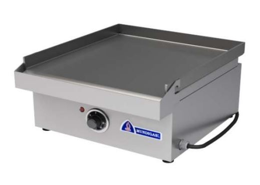 La Plancha Lisa sobremesa Eléctrica MUNDIGAS esta fabricada en acero inoxidable. Equipada con piloto indicador de encendido y regulación de temperatura mediante termostato. La placa decapada es lisa y tiene un espesor de 8 mm.