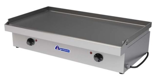 La Plancha Lisa sobremesa Eléctrica MUNDIGAS esta fabricada en acero inoxidable. Equipada con piloto indicador de encendido y regulación de temperatura mediante termostato. La placa decapada es lisa y tiene un espesor de 8 mm.