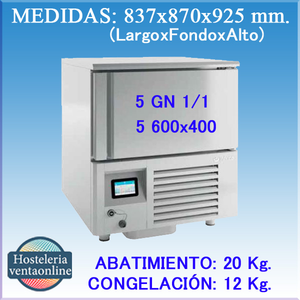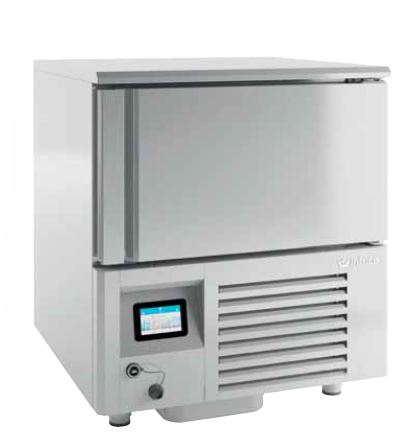 Abatidor de Temperatura de 5 bandejas Infrico, Este Abatidor de Temperatura es ideal para cocinas con espacios reducidos, puesto que tiene una capacidad para 5 bandejas GN 1/1 ó 600x400 mm. Este Abatidor nos permite bajar la temperatura de los alimentos hasta el punto de congelación, si es necesario, de manera rápida y eficaz, sin maltratar el producto. Permitiendo agilizar y adelantar los tiempos de producción y elaboración en la cocina.