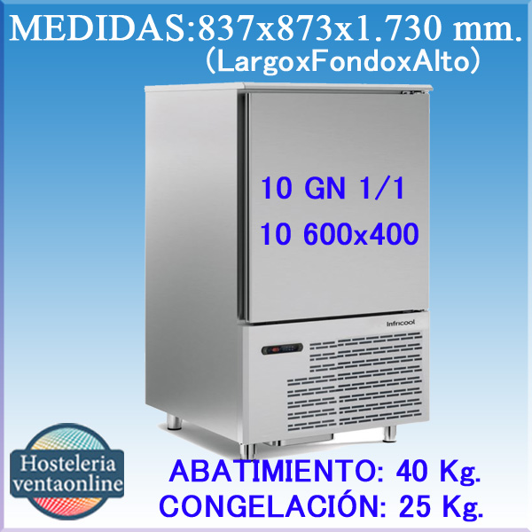 Abatidor de Temperatura de 10 bandejas I-Line, Este Abatidor de Temperatura es ideal para cocinas con espacios reducidos, puesto que tiene una capacidad para 10 bandejas GN 1/1 ó 600x400 mm. Este Abatidor nos permite bajar la temperatura de los alimentos hasta el punto de congelación, si es necesario, de manera rápida y eficaz, sin maltratar el producto. Permitiendo agilizar y adelantar los tiempos de producción y elaboración en la cocina.