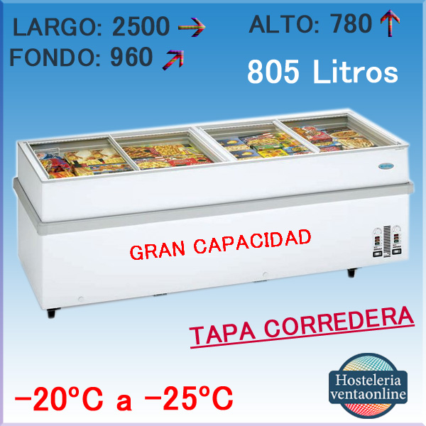 Conservadora con puertas de cristal correderas con capacidad de 805 Litros y Medidas 2.500x960x780 mm. con controlador digital.
