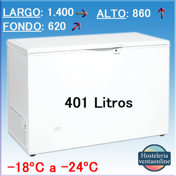 Arcón congelador tapa ciega abatible HC 460. Congelador horizontal que combina un alto rendimiento frigorífico, su temperatura oscila entre los -18ºC a los -24ºC, con la eficiencia energética que le confiere el uso del gas R-600A de bajo impacto ambiental. El sistema de refrigeración es estático.