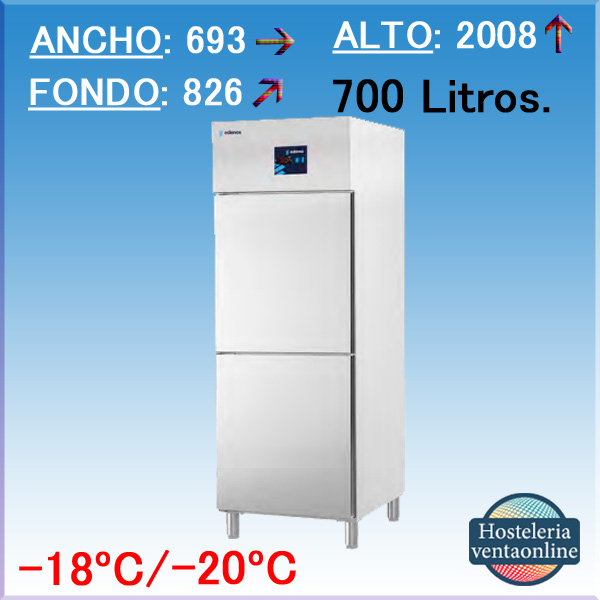 Armario Frigorífico Congelacion con 2 puertas para Hostelería, con estantes de 650x530 mm. y 700 Litros de capacidad, fabricación exterior e interior en acero inoxidable AISI 304.