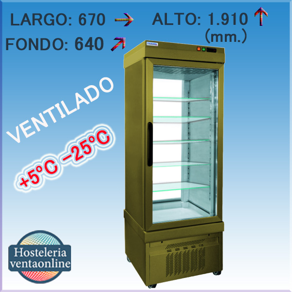 Vitrina Congelación especial para la exposición de tartas y dulces con 2 caras de cristal y 1 Puerta Refrigeración Ventilada (NO FROST).