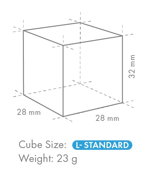 Maquina de hielo con Producción: 47 Kg/24h y cubito de 23 ó 13 gramos (28x28x32 y 25x25x23 mm.), con cuerpo en acero inoxidable, robusto, con patas y perfecto para disponer bajo el mostrador.