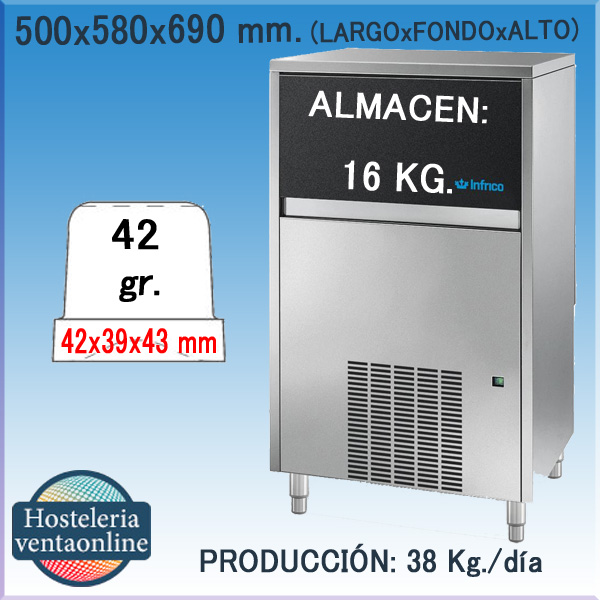 FABRICADOR DE HIELO MACIZO FHC35A/W HC CON ALMACEN Y CUBITO DE 42 GRAMOS(INFRICO)