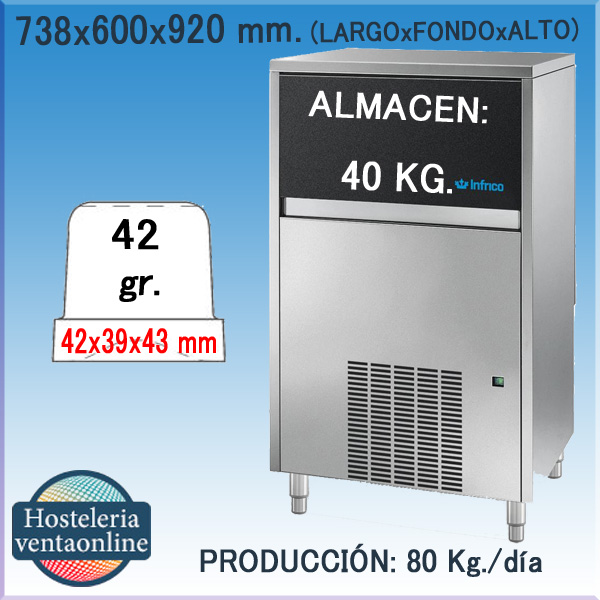 FABRICADOR DE HIELO MACIZO FHC80A/W HC CON ALMACEN Y CUBITO DE 42 GRAMOS(INFRICO)