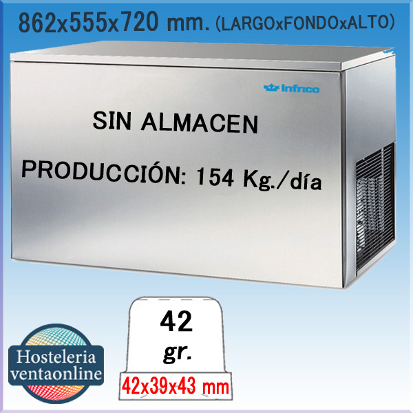FABRICADOR DE HIELO MACIZO FHCM150A/W HC SIN ALMACEN Y CUBITO DE 42 ó 60 GRAMOS(INFRICO)
