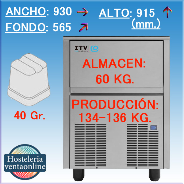 FABRICADOR DE HIELO MACIZO ORION 135 CON ALMACEN Y CUBITO DE 40 GRAMOS(ITV)