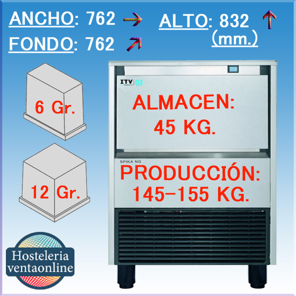 FABRICADOR DE HIELO MACIZO Y CRISTALINO SPIKA NG150 CON ALMACEN 45 KG. Y CUBITO DE 6-12 GRAMOS(ITV)