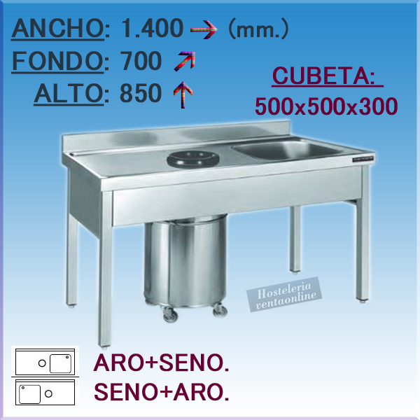 FREGADERO CON CUBETA Y ARO DE DESBARAZADO