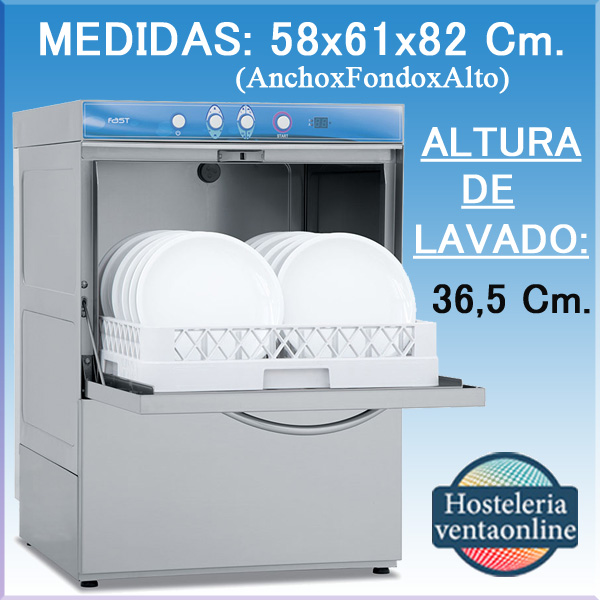 Lavavajillas industrial Fast 60T TRIFÁSICO Elettrobar Cesta 50x50 y altura útil de lavado de 36,5 Cm. 2 Ciclos de Lavado de:90 y 180 segundos.Dosificador de Abrillantador incorporado en el Lavavajillas.
