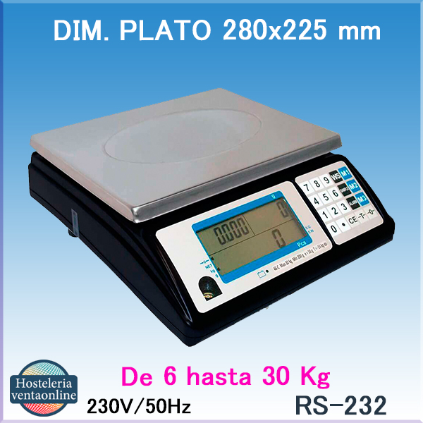 Plato de pesaje con medidas 280x225 mm. y capacidad de 6, 15 y 30 Kg. Es una todoterreno por su robustez resistencia y precisión.La Bascula EPELSA 46 C, bascula industrial resistente y versatil con plato de 280x225 mm. Disponible con capacidades de 6, 15 y 30 Kg.
