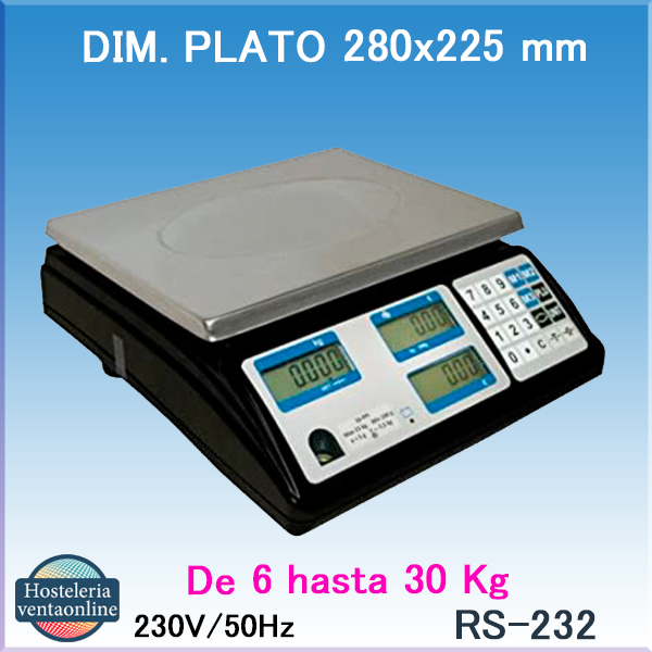 Plato de pesaje con medidas 280x225 mm. y capacidad de 6, 15 y 30 Kg. Es una todoterreno por su robustez resistencia y precisión.La Bascula EPELSA 56 PPI, bascula industrial resistente y versatil con plato de 280x225 mm. Disponible con capacidades de 6, 15 y 30 Kg.
