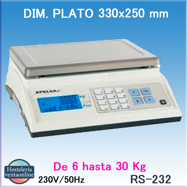 Plato de pesaje con medidas 330x250 mm. y capacidad de 6, 15 y 30 Kg. Es una todoterreno por su robustez resistencia y precisión.La Bascula EPELSA MARTE 10 MF, bascula industrial resistente y versatil con plato de 330x250 mm. Disponible con capacidades de 6, 15 y 30 Kg.
