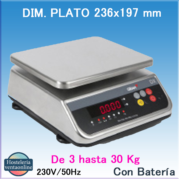 Plato de pesaje con medidas 236x197 mm. y capacidad de 3, 6, 15 y 30 Kg. Es una todoterreno por su robustez resistencia y precisión.La Bascula GRAM DX, bascula industrial resistente y versatil con plato de 236x197 mm. Disponible con capacidades de 3, 6, 15 y 30 Kg.