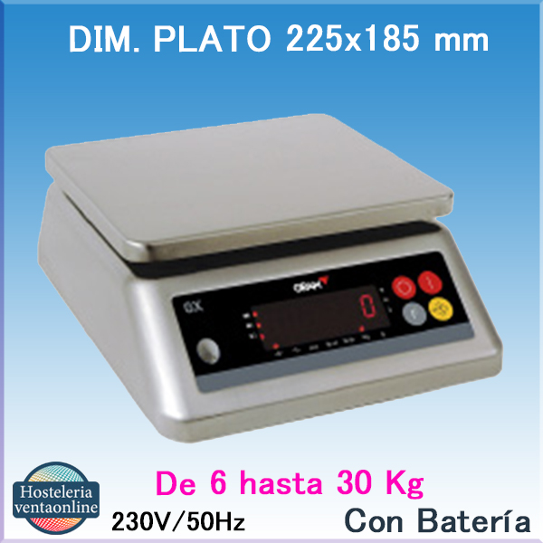 Plato de pesaje con medidas 225x185 mm. y capacidad de 6, 15 y 30 Kg. Es una todoterreno por su robustez resistencia y precisión.La Bascula GRAM GX, bascula industrial resistente y versatil con plato de 225x185 mm. Disponible con capacidades de 6, 15 y 30 Kg.
