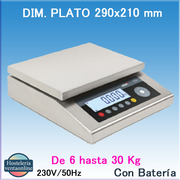 Plato de pesaje con medidas 290x210 mm. y capacidad de 6, 15 y 30 Kg. Es una todoterreno por su robustez resistencia y precisión.La Bascula GRAM S5i, bascula industrial resistente y versatil con plato de 290x210 mm. Disponible con capacidades de 6, 15 y 30 Kg.