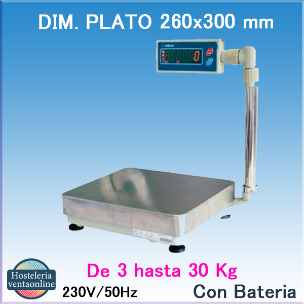 Plato de pesaje con medidas 260x300 mm. y capacidad de 3, 6, 15 y 30 Kg. Es una todoterreno por su robustez resistencia y precisión.La Bascula EPELSA NEPTUNO AQUA, bascula industrial resistente y versatil con plato de 260x300 mm. Disponible con capacidades de 3, 6, 15 y 30 Kg.