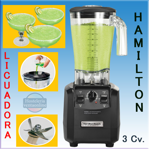 Batidora de Alto Rendimiento FURY HBH550 CE Hamilton Beach, con vaso de 1,9 Litros de policarbonato y Motor de 3 Cv. con acoplamientos y eje de metal. Hacen las bebidas heladas en 12 segundos.