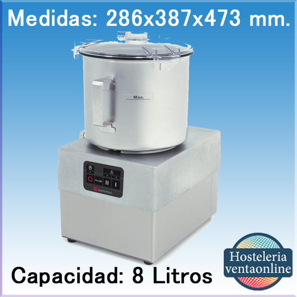 Cutter profesional K-82 Sammic con capacidad de 8 litros y 2 velocidades, diseñada para picar toda clase de alimentos (carnes, hortalizas, almendras) hace salsas, purés, compotas,cremas,mahonesas,monta nata,etc.