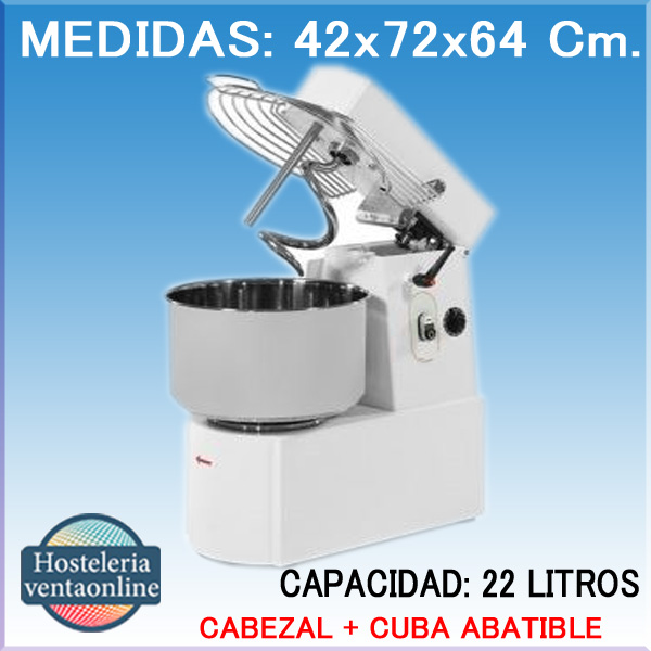 Amasadora profesional en espiral con capacidad de 22 litros para amasar cualquier producto, Ideal para la preparación de masas en panaderías, pizzerias y pastelerias. Con caldero de acero inoxidable.