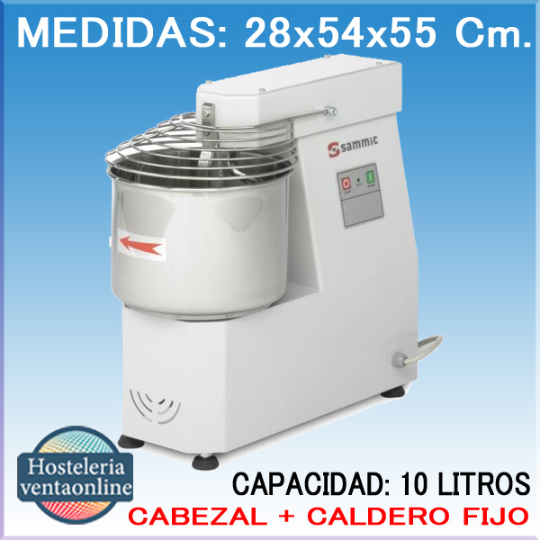 Amasadora profesional de espiral Sammic DM-10, con cabezal y caldero fijos, diseñadas para amasar masas duras (pizza,pan,etc.)