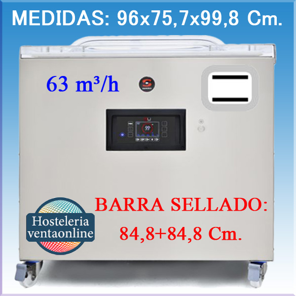 Envasadora al vacio Profesional SE-806 LL Sammic con barras de soldadura DOBLE de 84,8+84,8 Cm. Equipada con bomba Busch de 63 m³/h y control de vacío por sensor.