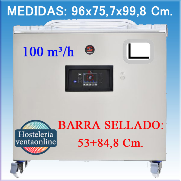 Envasadora al vacio Profesional SU-810 Sammic con barras de soldadura DOBLE de 53+84,8 Cm. Equipada con bomba Busch de 100 m³/h y control de vacío por sensor. Opcional el Gas Inerte, impresora con conectividad bluetooth y Soldadura plus.