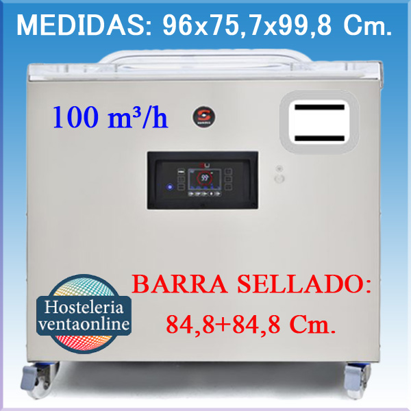 Envasadora al vacio Profesional SE-810 LL Sammic con barras de soldadura DOBLE de 84,8+84,8 Cm. Equipada con bomba Busch de 100 m³/h y control de vacío por sensor.