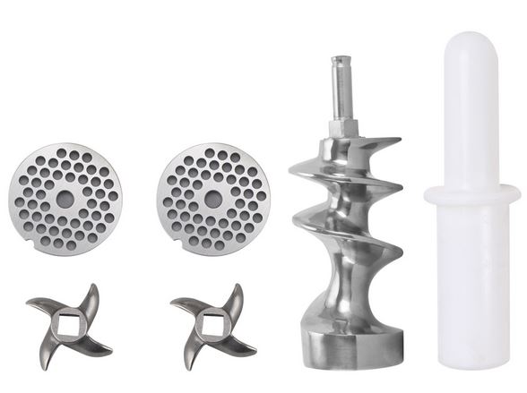 Picadora de Carne construida integramente en Acero Inoxidable, Con Boca de Acero Inoxidable, Simple corte y Motor Monofásico de 1,14 Cv.