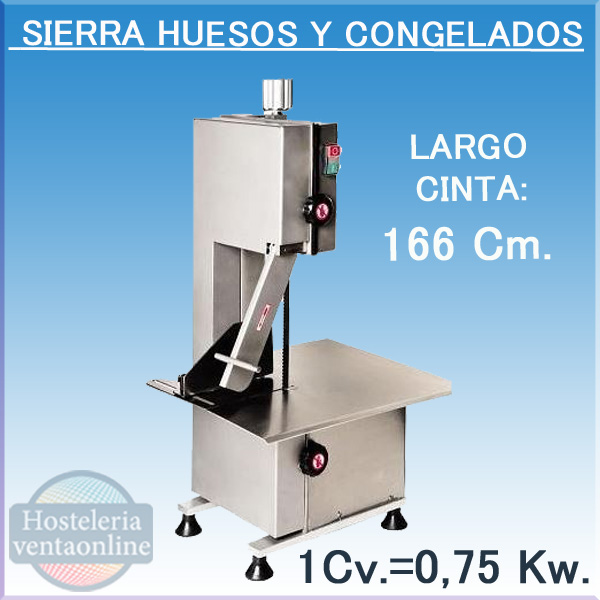 Sierra de huesos construida en acero inoxidable y aluminio anodizado. De larga duración, segura y fácil de usar y limpiar. Dispone de un interruptor térmico de protección de encendido y apagado. Longitud de la Cinta: 166 Cm.
